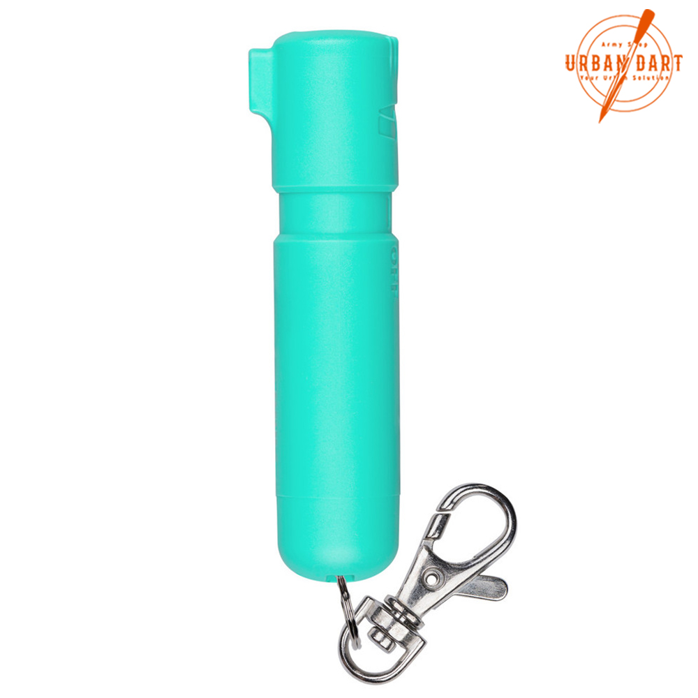 Biber sprej mint Mighty Discreet ima domet od 12 stopa (4 metra). Ovaj biber sprej sadrži boju za UV označavanje koja pomaže vlastima da identifikuju osumnjičenog nakon što se prskate. Inovativna zaštita sa okretnim vrhom pomaže u sprečavanju slučajnog pražnjenja. Gurnite privezak za ključeve na ključeve radi lakšeg nošenja. Priložena kopča se pričvršćuje na torbice, rance, trake, rajsferšluse i omče za kaiš za trenutni pristup. SABRE biber sprej se proizvodi u SAD.